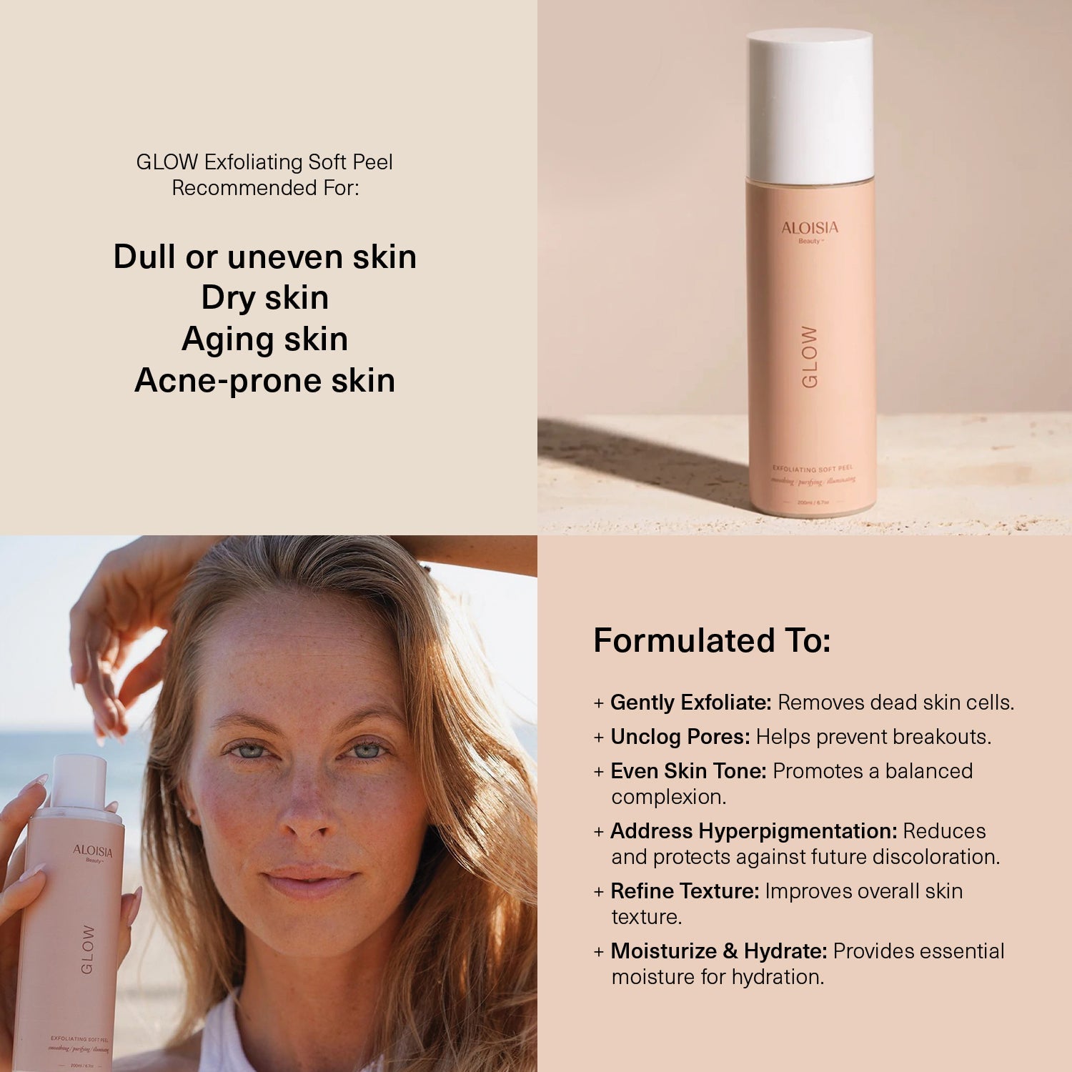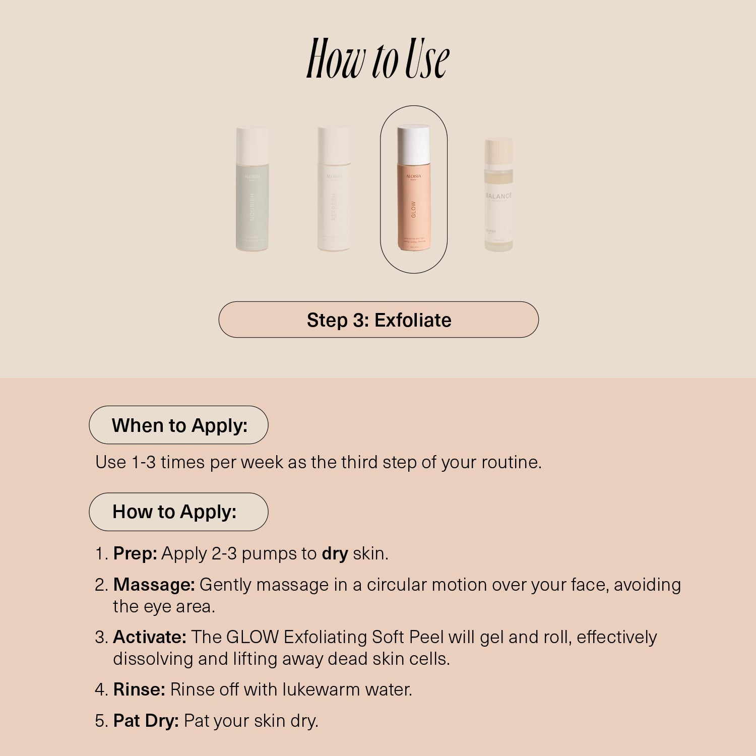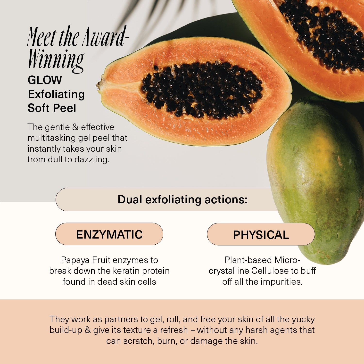 - GLOW Exfoliating Soft Peel will gel and roll to dissolve and lift away dead skin cells.