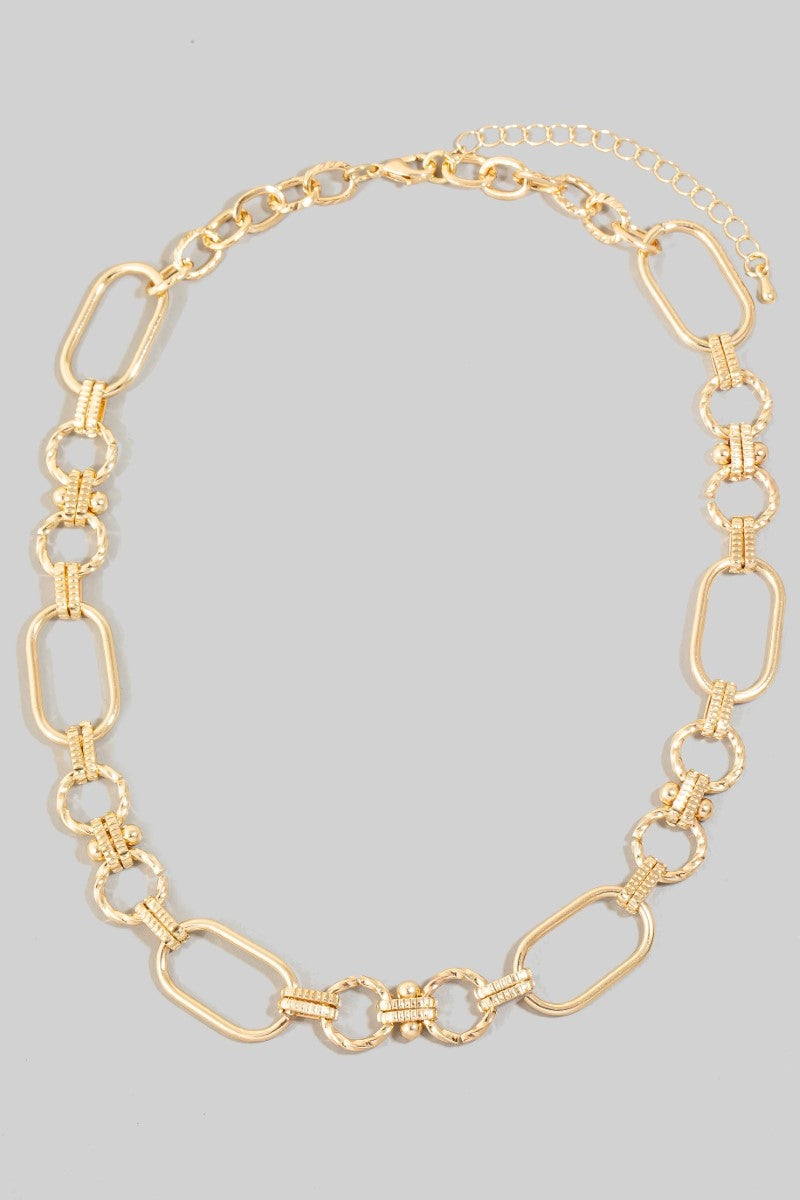The Abstract Mixed Chain Link Necklace is a bold and artistic statement piece that combines a variety of chain links for a unique, layered look. With its mix of textures and shapes, this necklace offers a modern, edgy vibe that pairs well with both casual and dressy outfits. Its abstract design adds an eye-catching element, making it the perfect accessory to elevate any ensemble with a touch of contemporary flair.