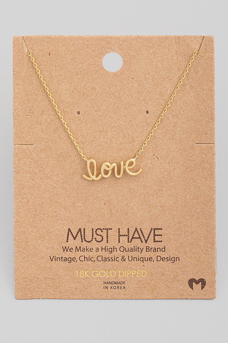 A delicate and meaningful piece that speaks from the heart. This elegant necklace features a beautifully scripted "Love" pendant, designed to mimic natural handwriting for a personal touch. Perfect for layering or wearing alone, it’s a timeless accessory that adds charm and romance to any look. An ideal gift to express love and appreciation.