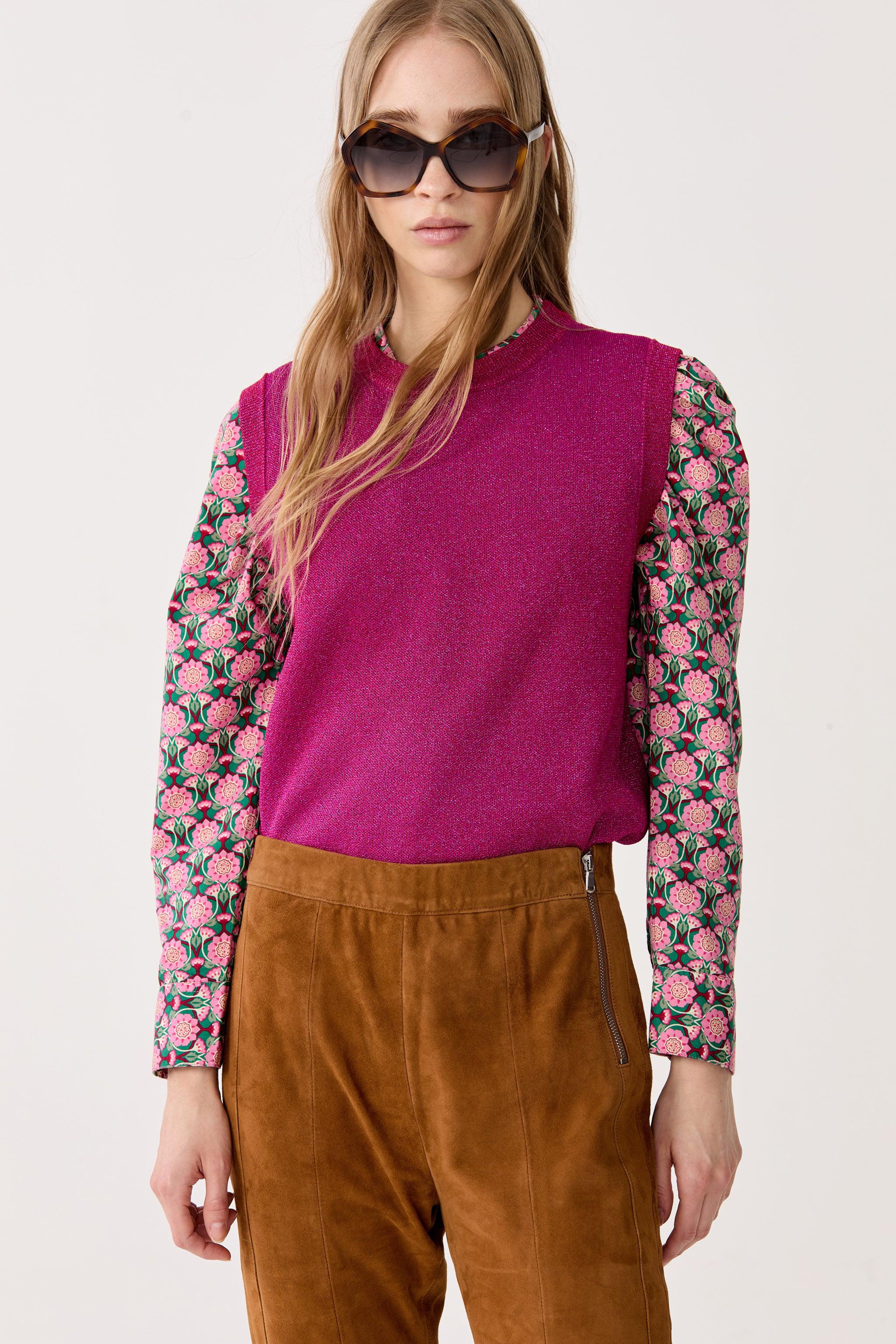 This little number will be your ally for dressing up any look. The sleeveless Glitter Top is knitted with lurex for a shiny texture, and its boxy silhouette makes it perfect for layering over our cotton poplin shirts.