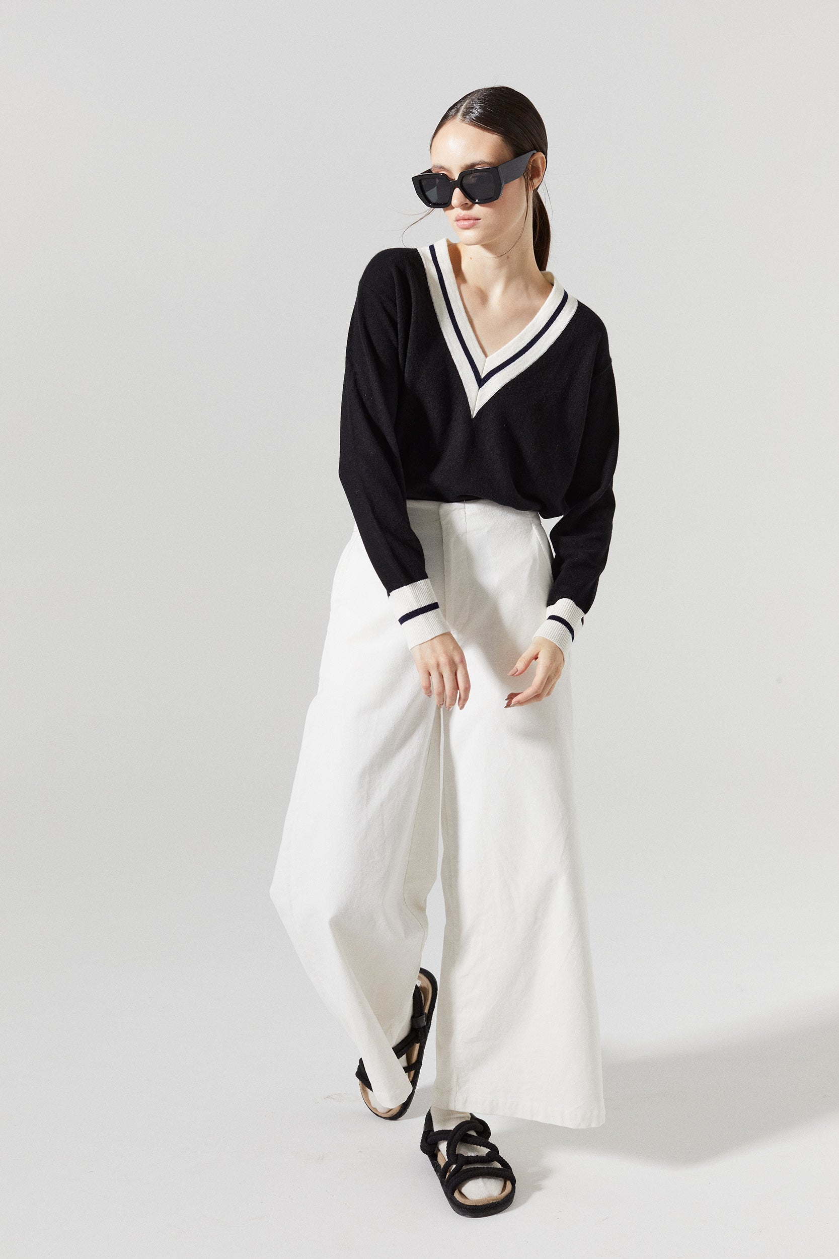 The New Luna Pant features wide legs and a flattering high-waist with elastic back waistline for a better fit. Made with soft cotton corduroy, this is an ideal piece for the season.