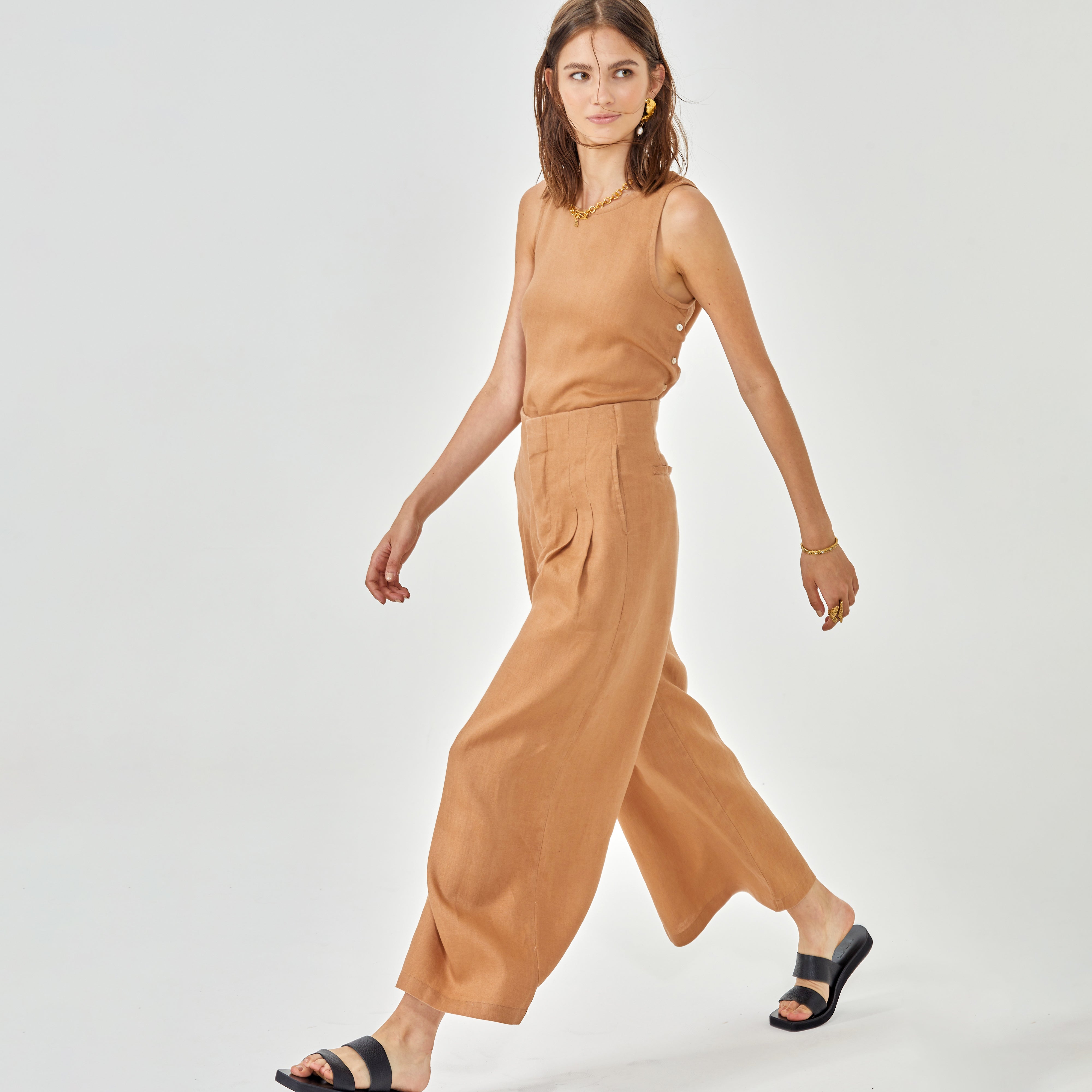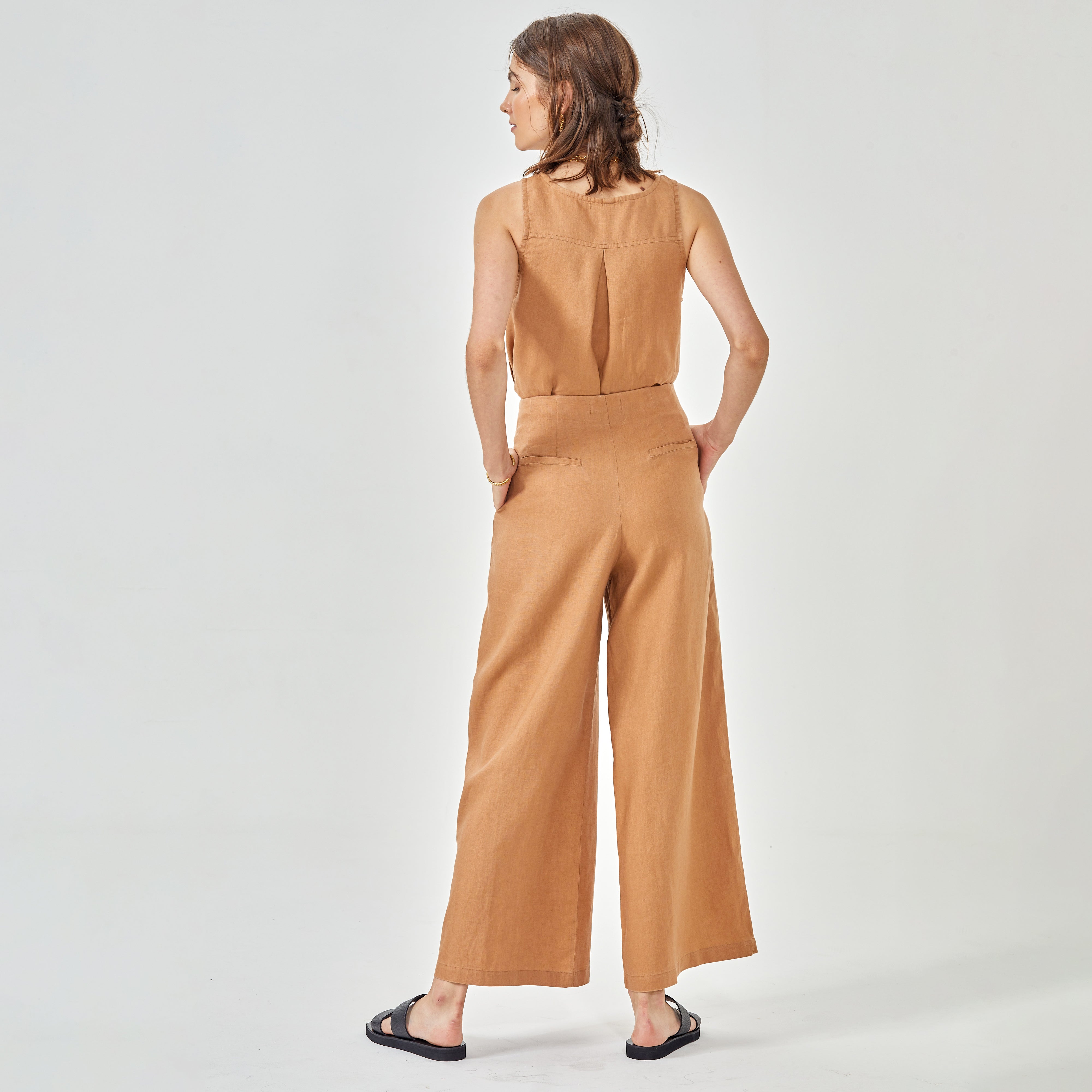 Discover our bestselling high-waisted Culotte Linen Pants, designed with a structured waistband for added support and comfort. These wide pants are perfect for those who love a snug fit around the waist and have a defined waistline. They offer a flattering silhouette and are ideal for creating a chic, polished look. They are made with our signature premium 100% organic linen. They have side pockets and front zipper fastening with a hook.