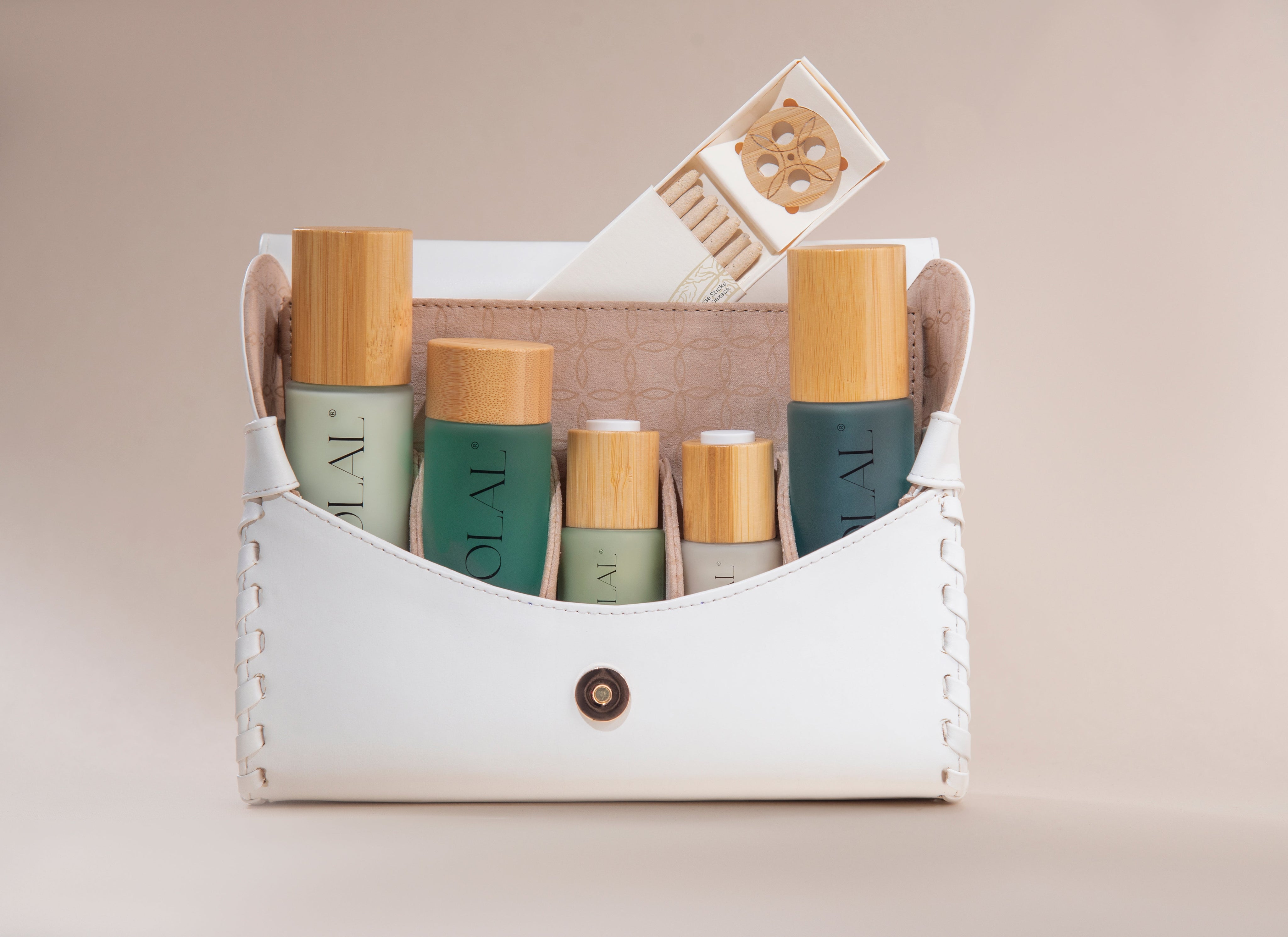 Housed in our limited edition artisanal Cactus Leather Carry Case, this set is thoughtfully designed for travel and TSA-approved, making it easy to take your ceremonia wherever you go—whether across borders or into stillness.