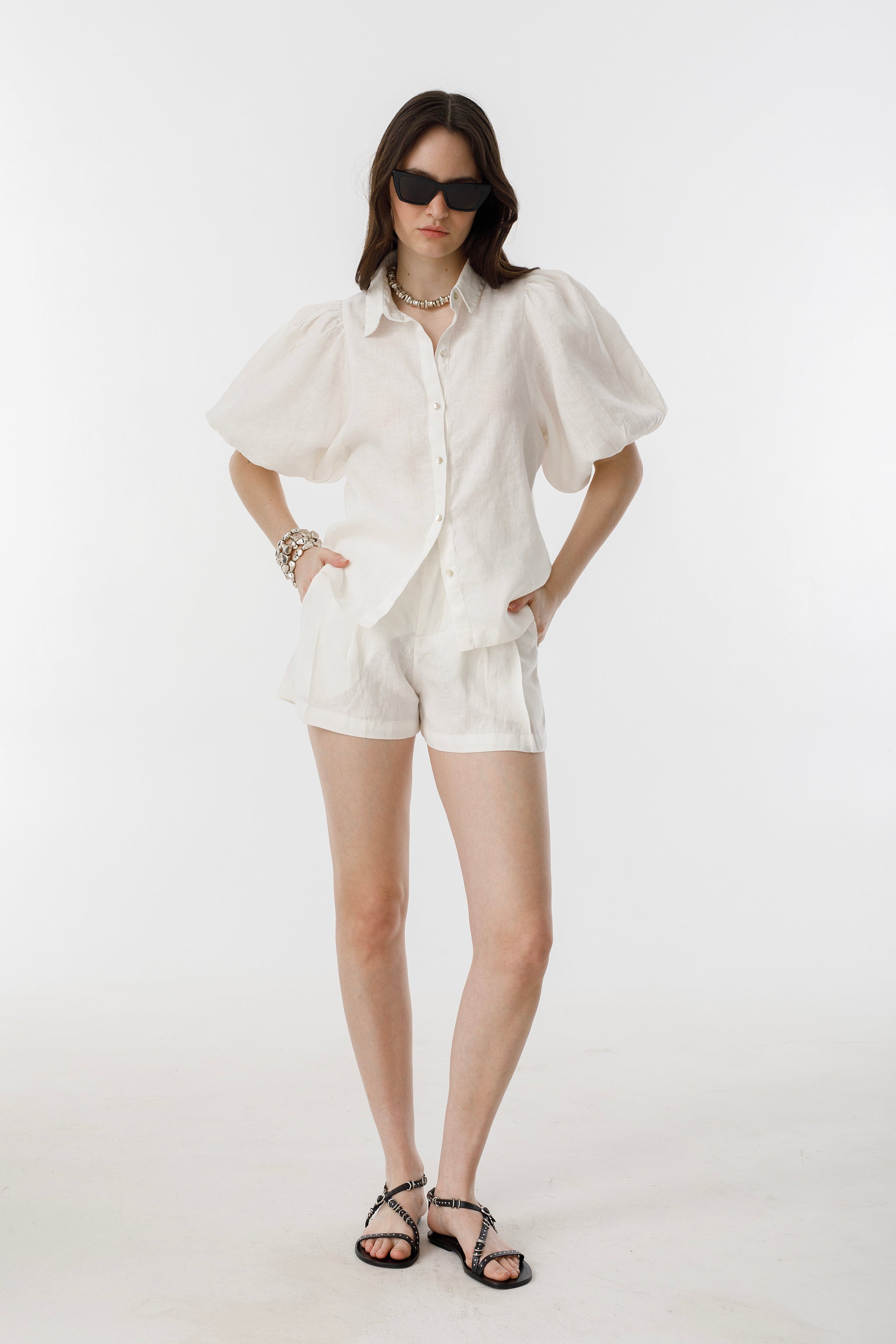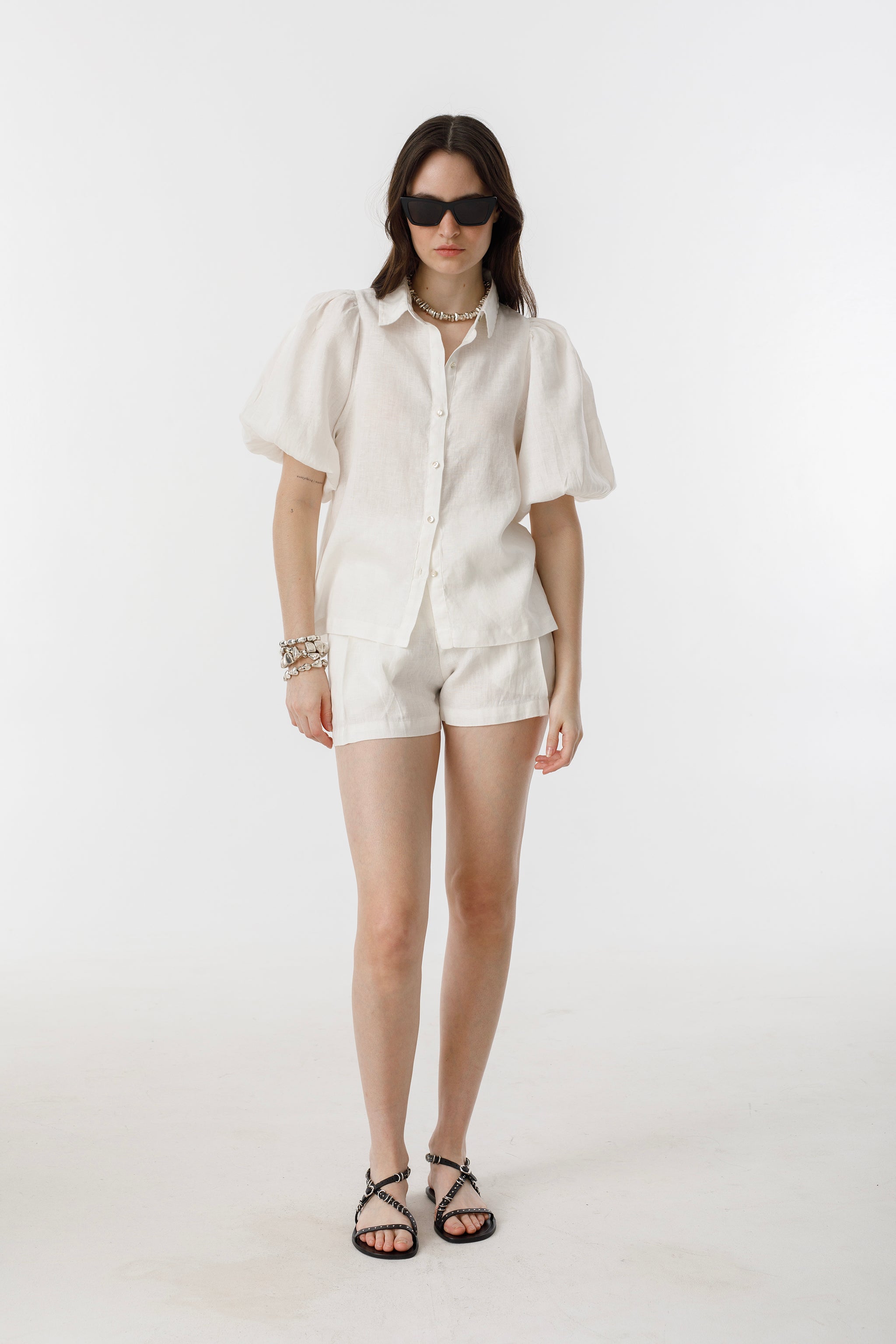 Flattering and super easy, the Angel Linen Shirt will be your ally all year long. Crafted from our premium 100% natural linen, it's pre-washed and softened for easy care and a lovely touch. This shirt features a classic collar, shell buttons, and feminine puffed sleeves.