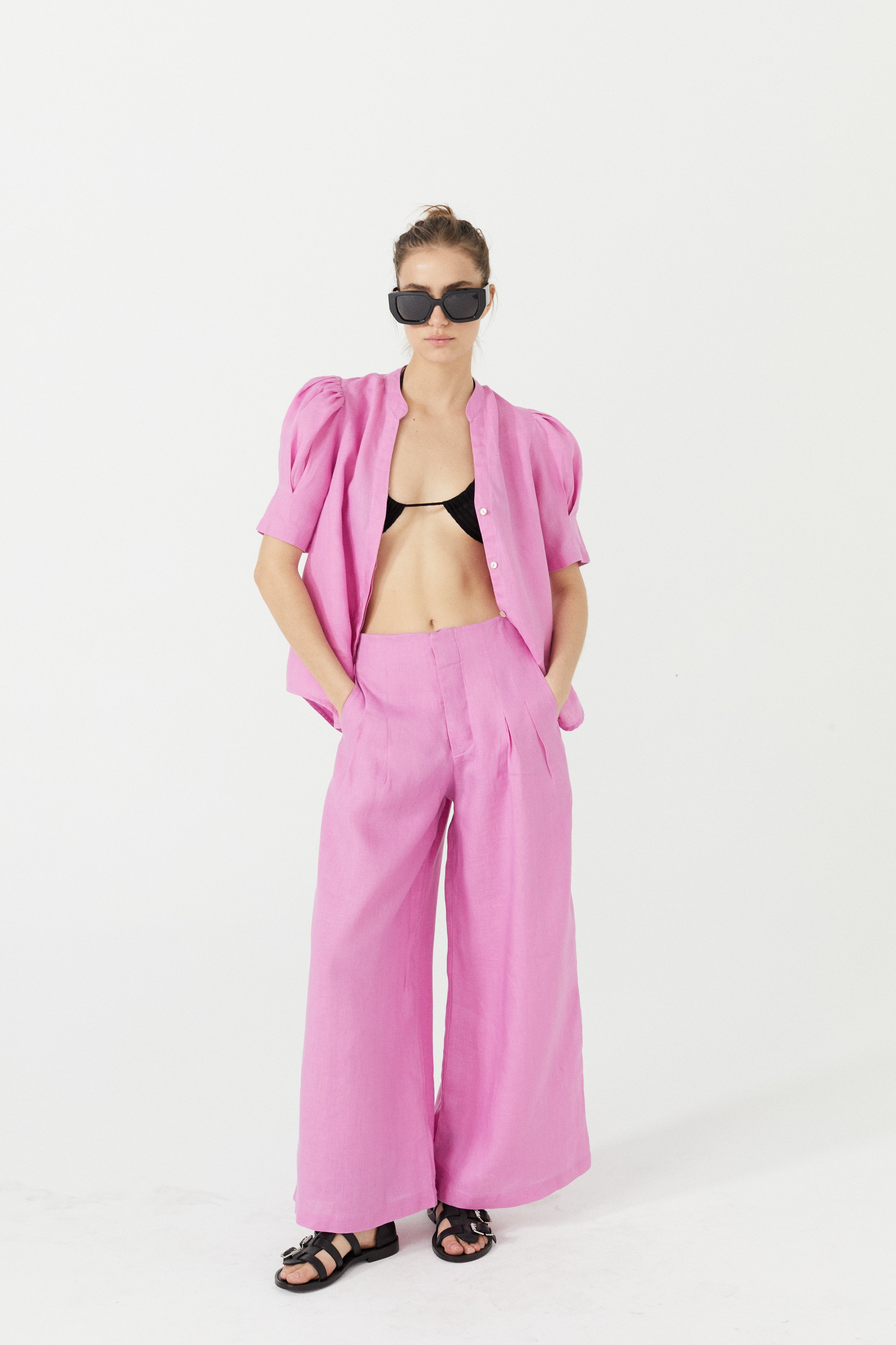 There's nothing like a good linen shirt. The Athina is femenine, casual and elegant at the same time. Made with our premium 100% linen, it features puffed short sleeves and mao v-neck with shell buttons.