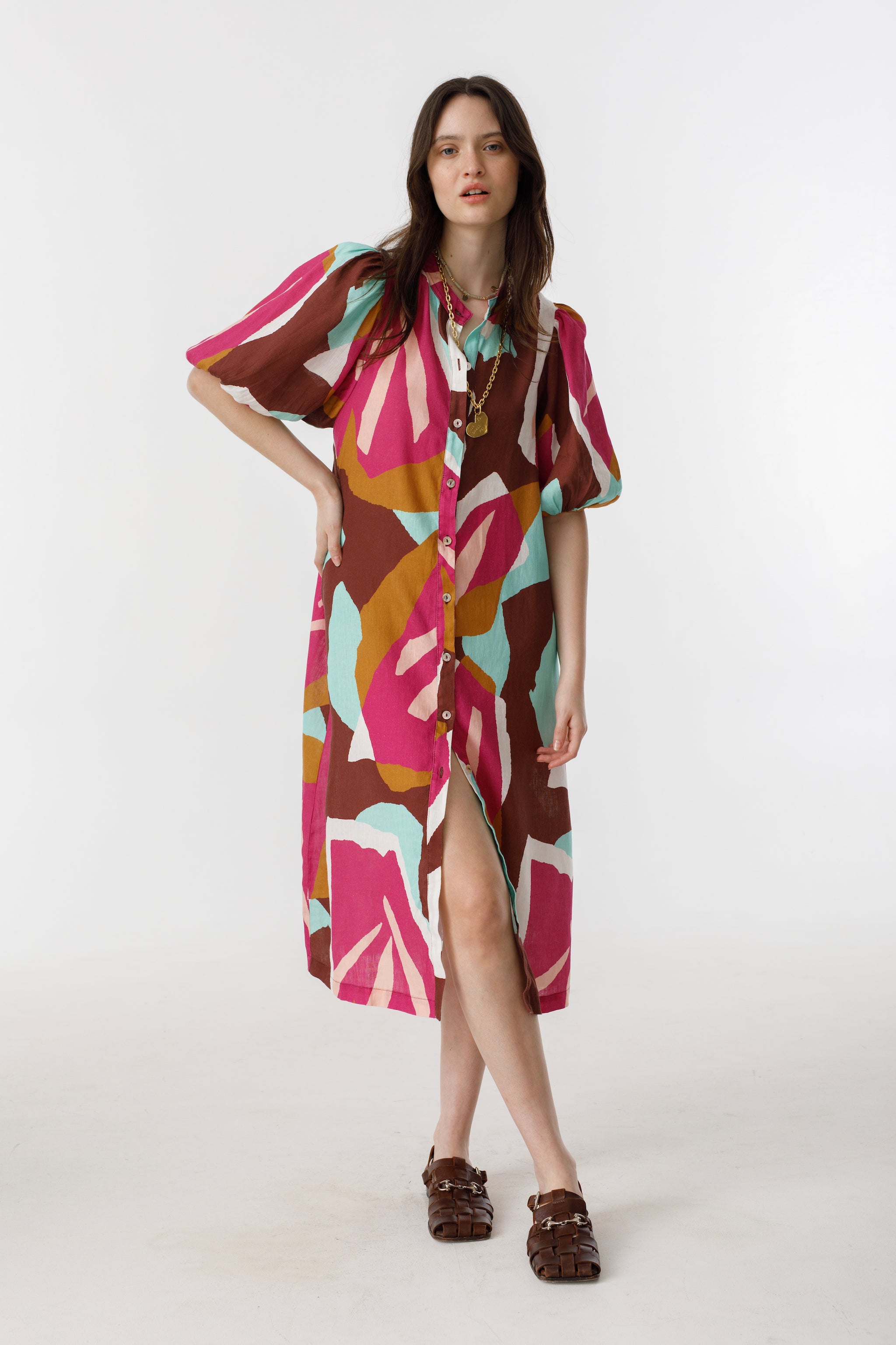 If you're seeking a feminine and comfortable dress, without a doubt, we would recommend our signature Bubble Dress. This gem has been a long-time best-selling piece, and we're absolutely certain you'll adore it. Crafted with our beloved 100% organic linen, it's pre-washed and softened for effortless care and a lovely drape. This midi-length linen dress has romantic puffed sleeves up to the elbow, a Mandarin collar, and shell buttons.