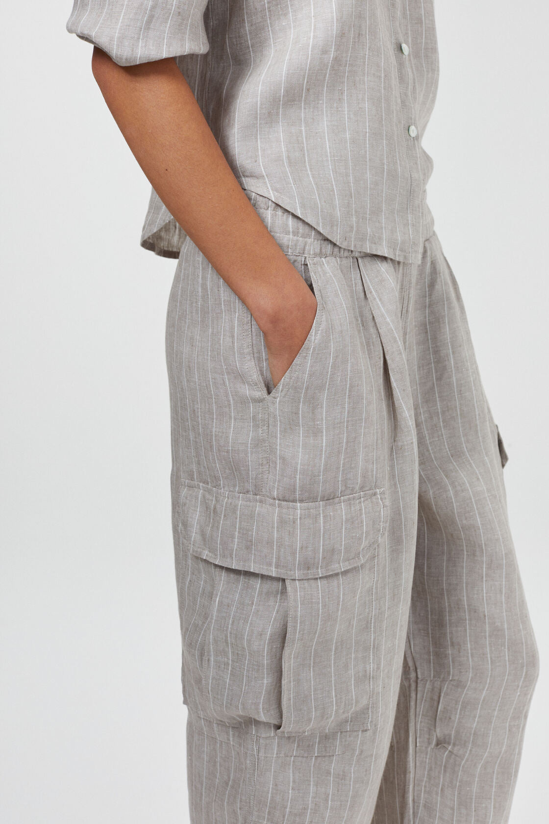 Our Cargo Pants are made from the softest premium 100% organic linen, making it your best ally for this summer. The side pockets, cinched hem and super relaxed fit make it one of our comfiest pieces ever.
