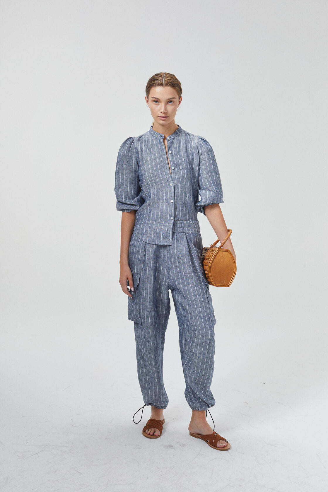• Cargo Linen Pants - Navy Stripes