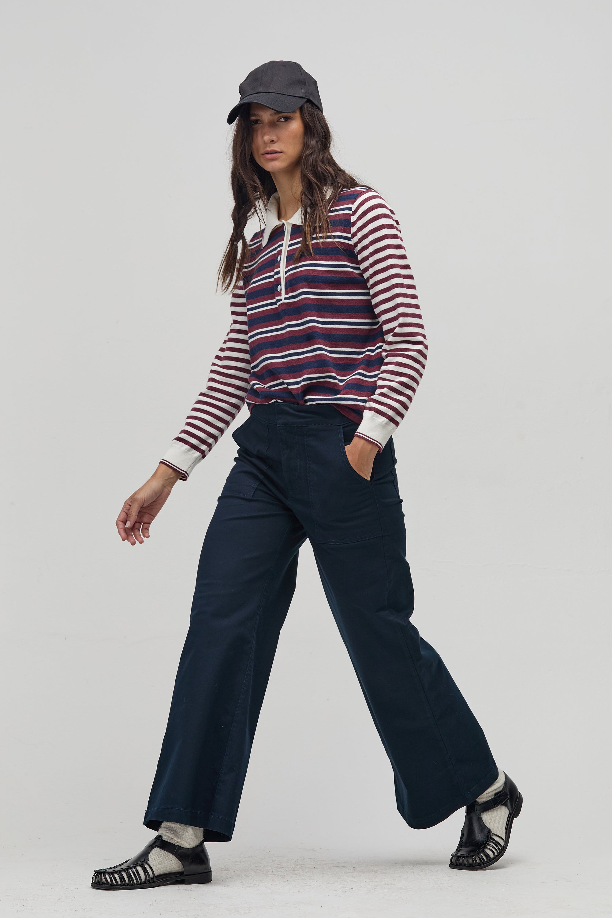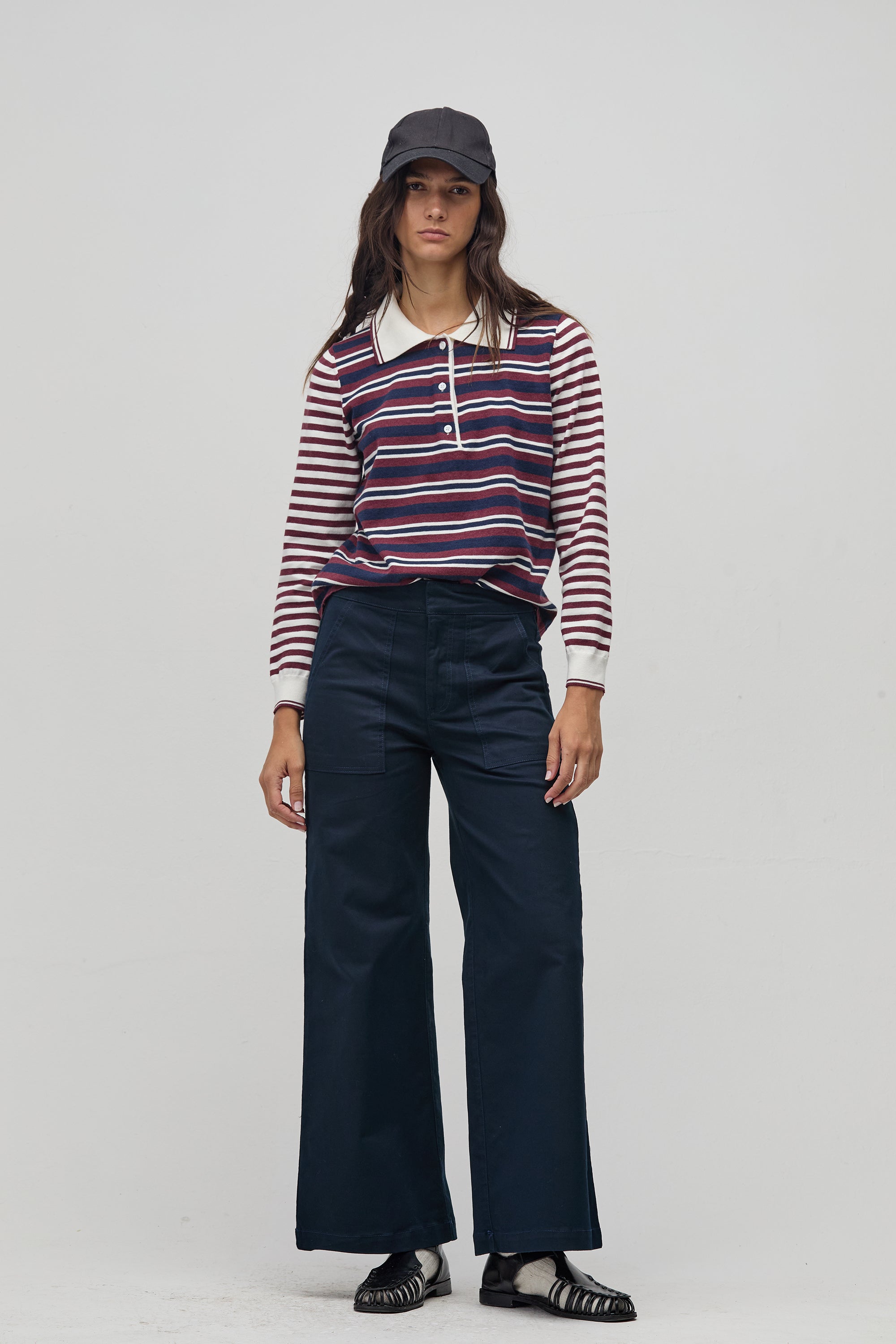• College Polo Sweater - Bordeaux and Navy Stripes