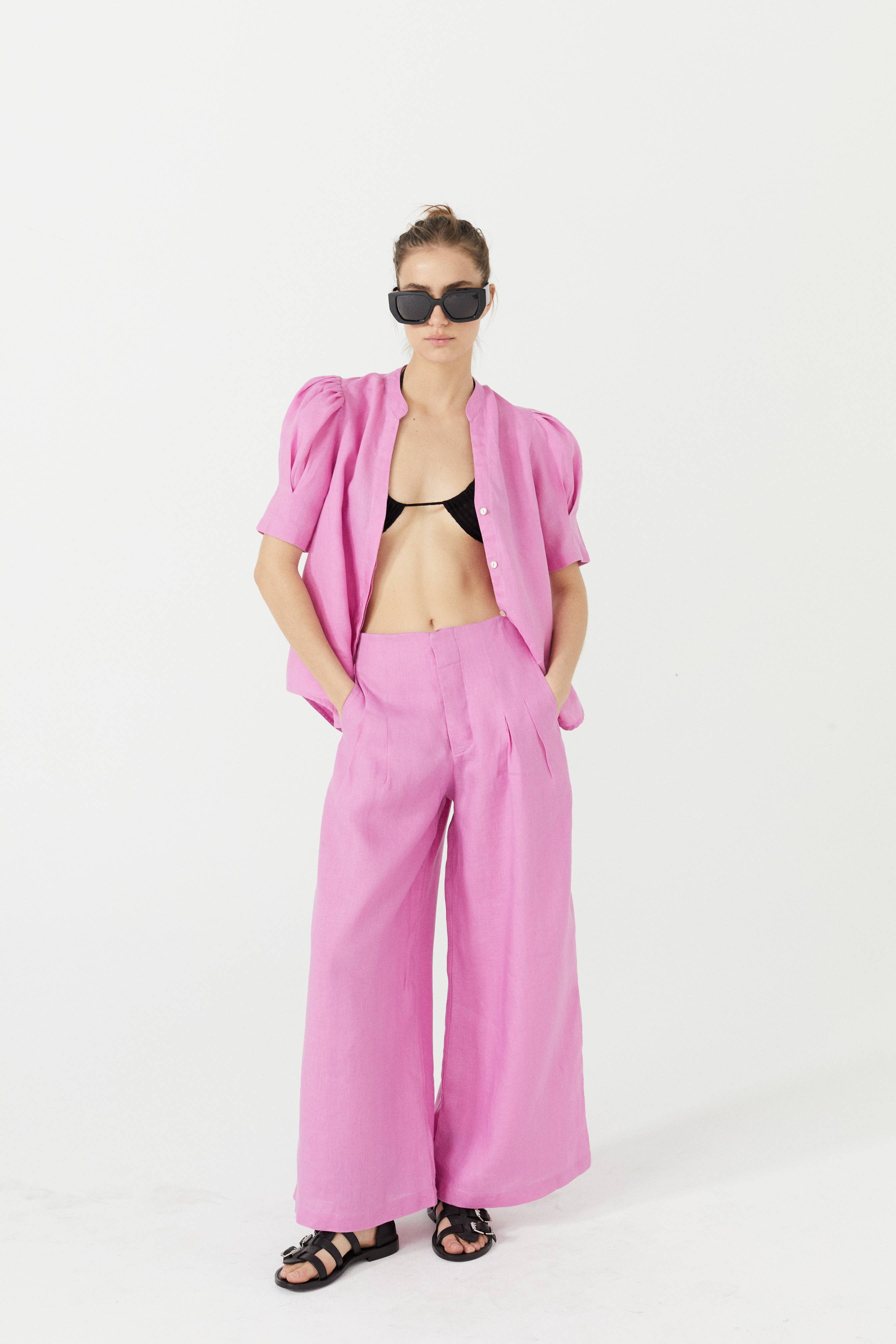 Discover our bestselling high-waisted Culotte Linen Pants, designed with a structured waistband for added support and comfort. These wide pants are perfect for those who love a snug fit around the waist and have a defined waistline. They offer a flattering silhouette and are ideal for creating a chic, polished look. They are made with our signature premium 100% organic linen. They have side pockets and front zipper fastening with a hook.