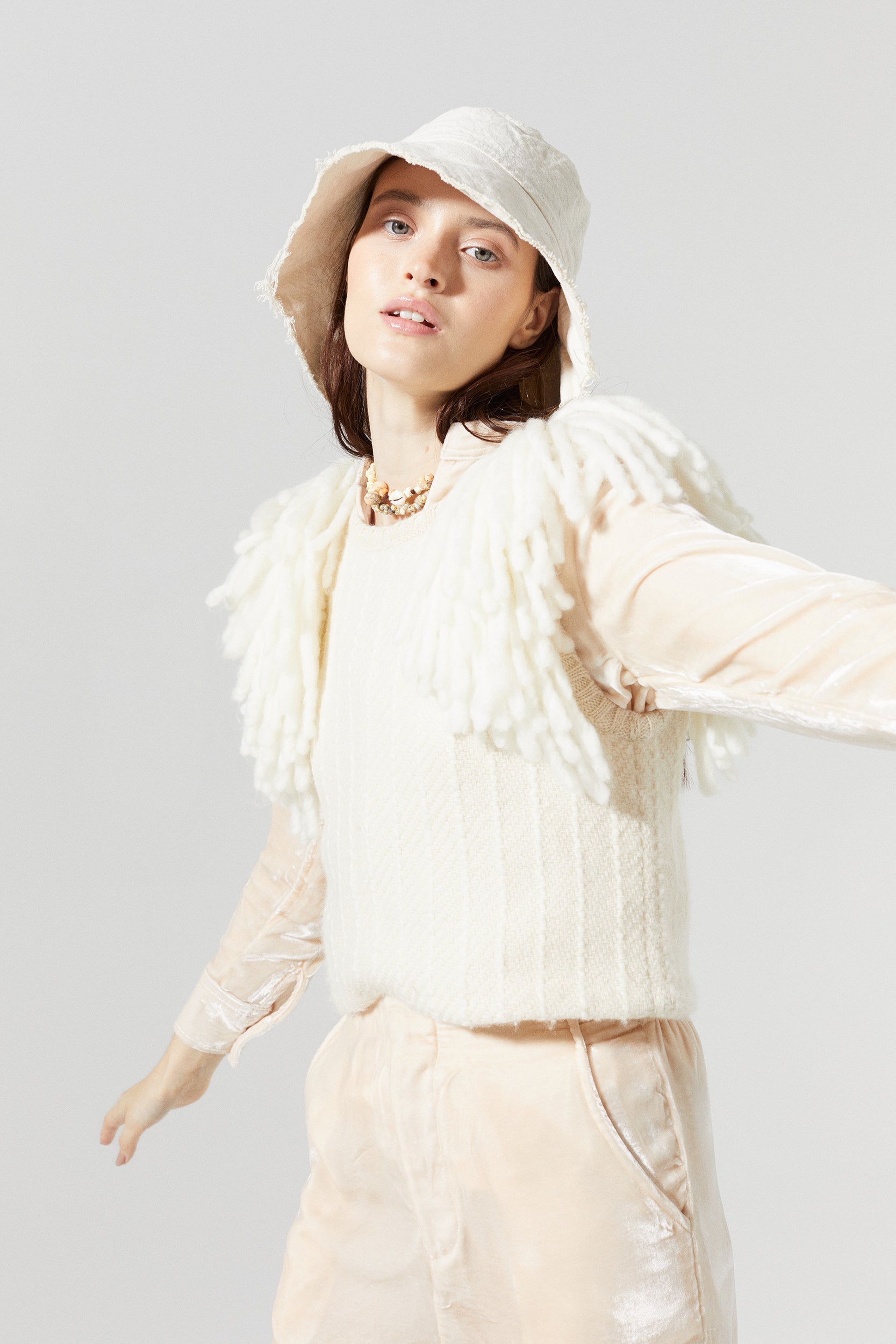 Our Lake Vest is a chic little piece which features a full set of fringes on the shoulders for an empowered and playful look. It was handmade by Uruguayan woman artisans from NGO Manos del Uruguay, which fills us with pride and love for each of our Merino Wool styles.