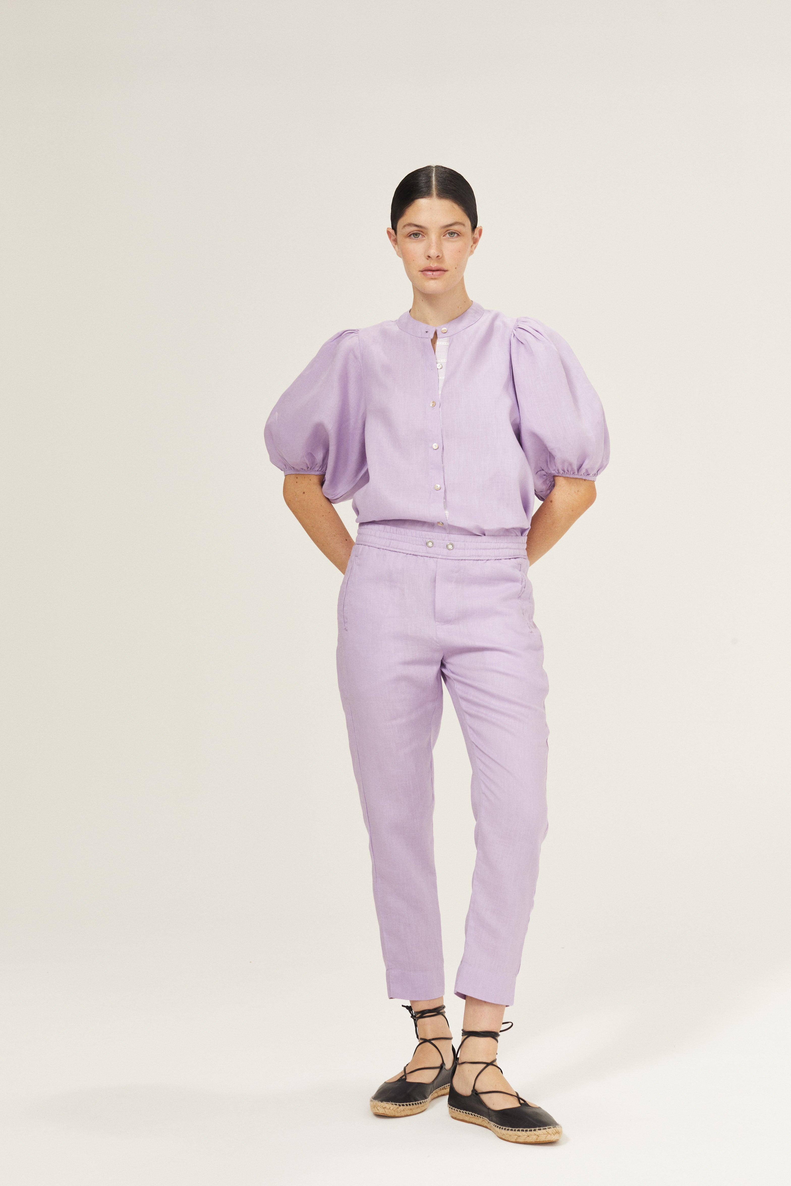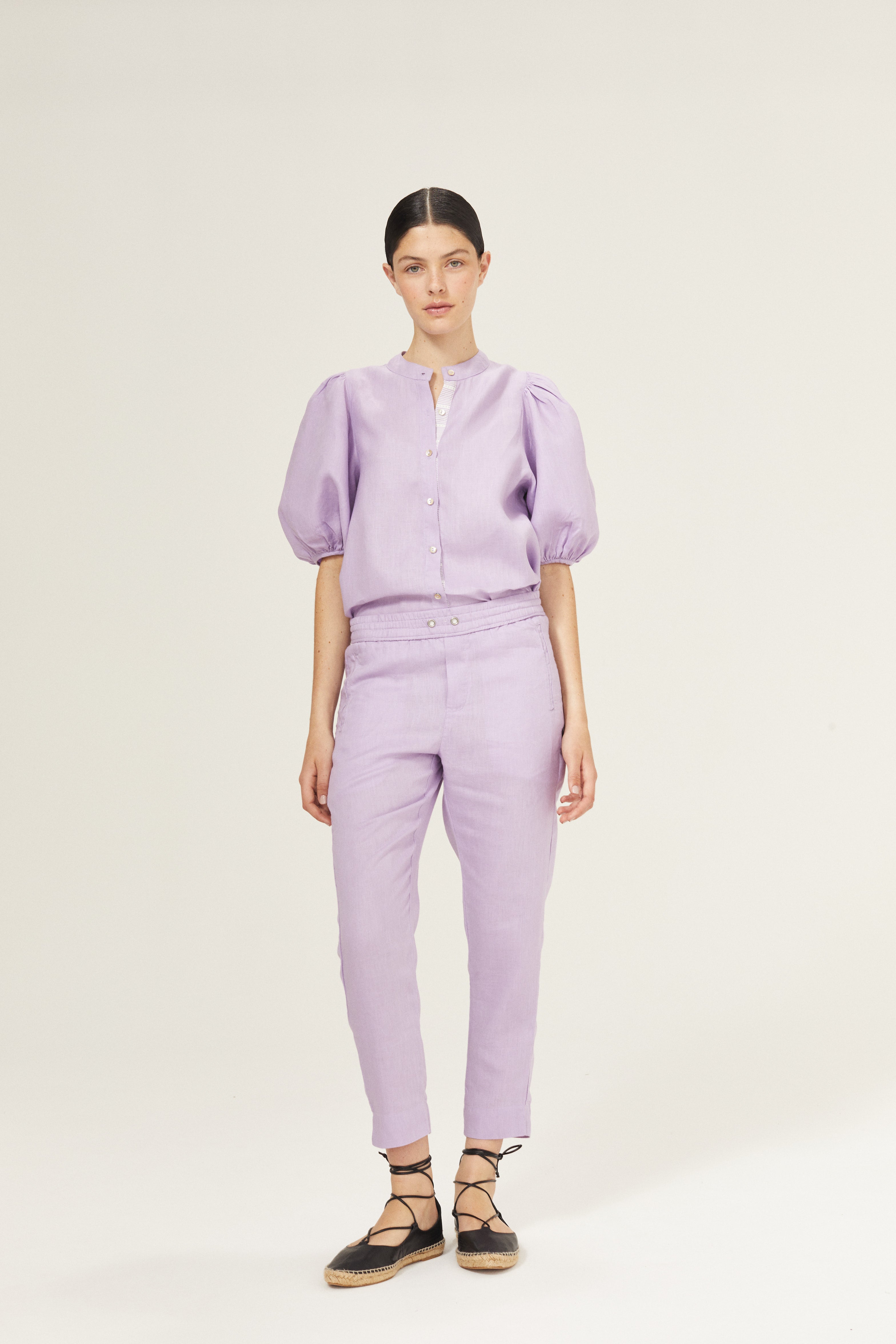 This easy to wear and easy to love classic jogger linen pant is versatile enough for all your everyday and special occasions. Made entirely of naturally processed, handmade 100% linen. It has an elastic drawstring waistband with a rolled-up hemline at the bottom, side pockets, and two faux back pockets.