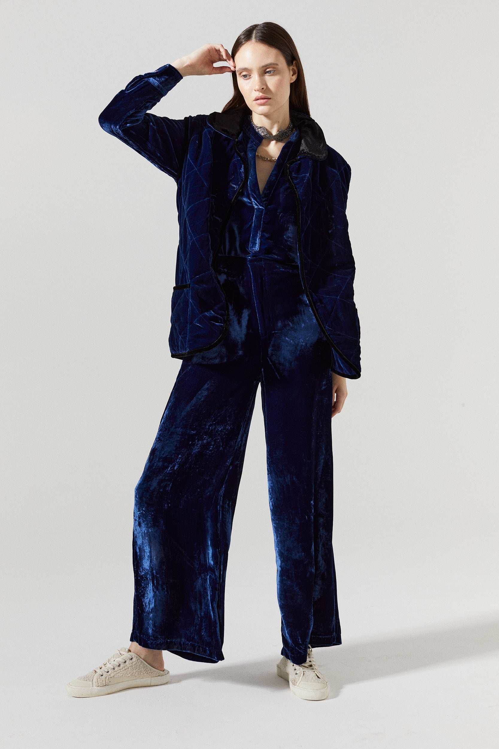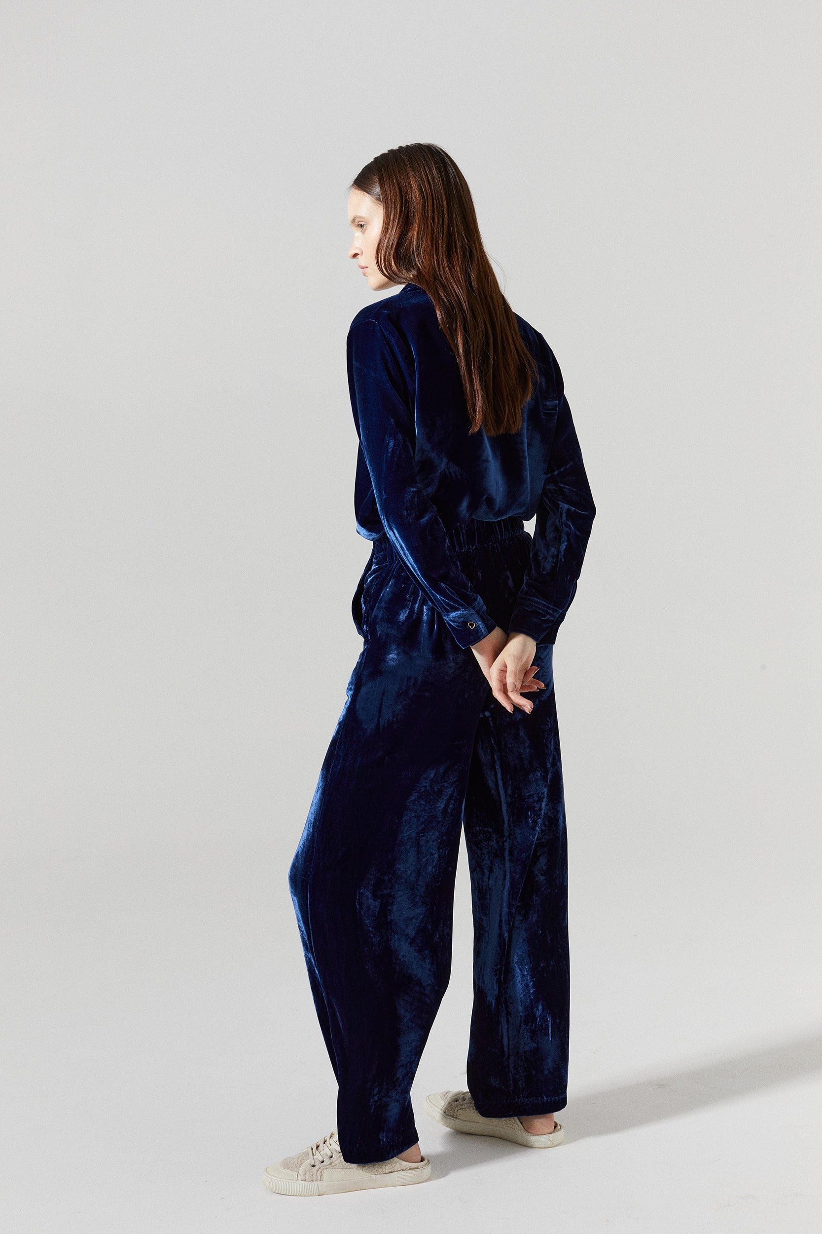• Nikka Silk Velvet Shirt - Navy Blue