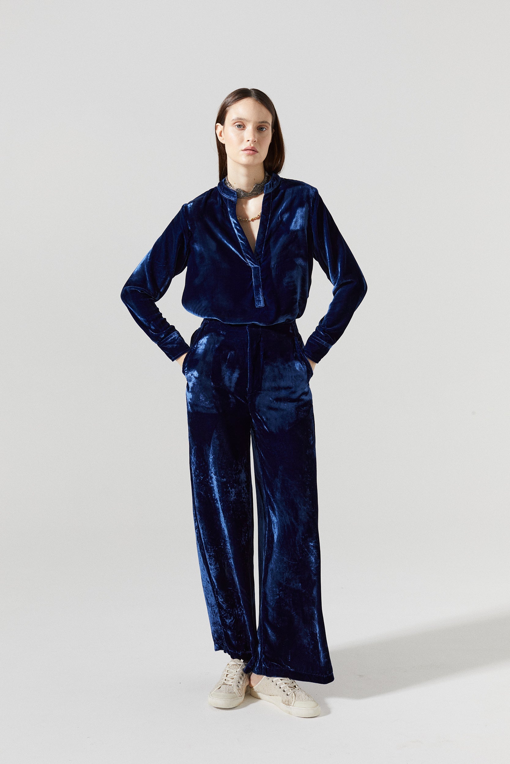 Nikka Silk Velvet Shirt - Navy Blue