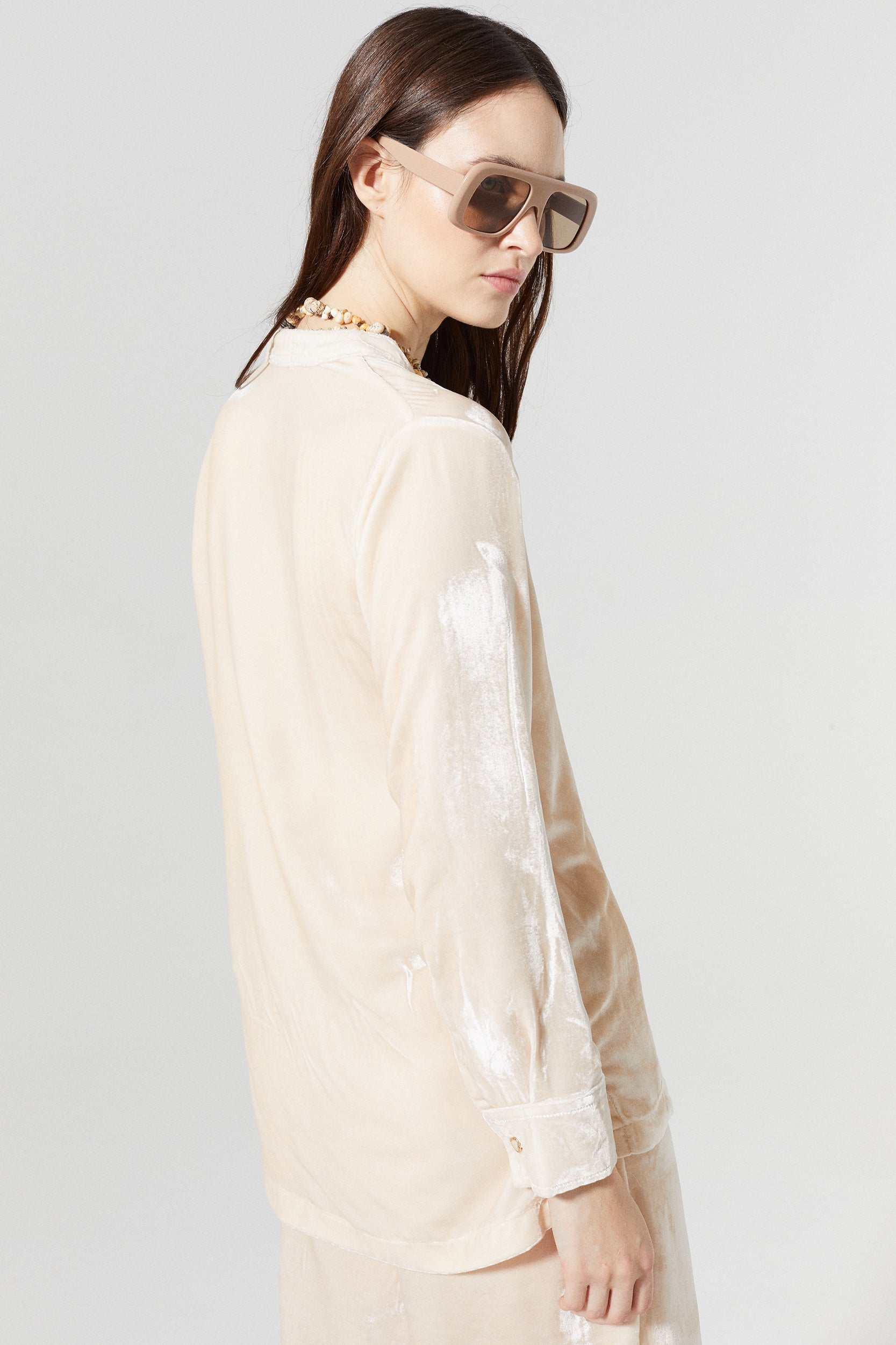 The Nikka Shirt is the elevated classic you’ll adore for this season. Effortless and elegant, it’s made with pure silk velvet, which adds a lovely shine and texture to this style. It features long sleeves and a Mao V-neck.