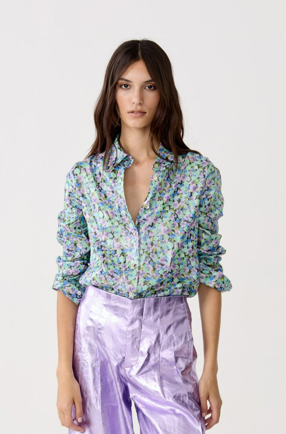 San Marino Metallic Linen Shirt - Meadow Print