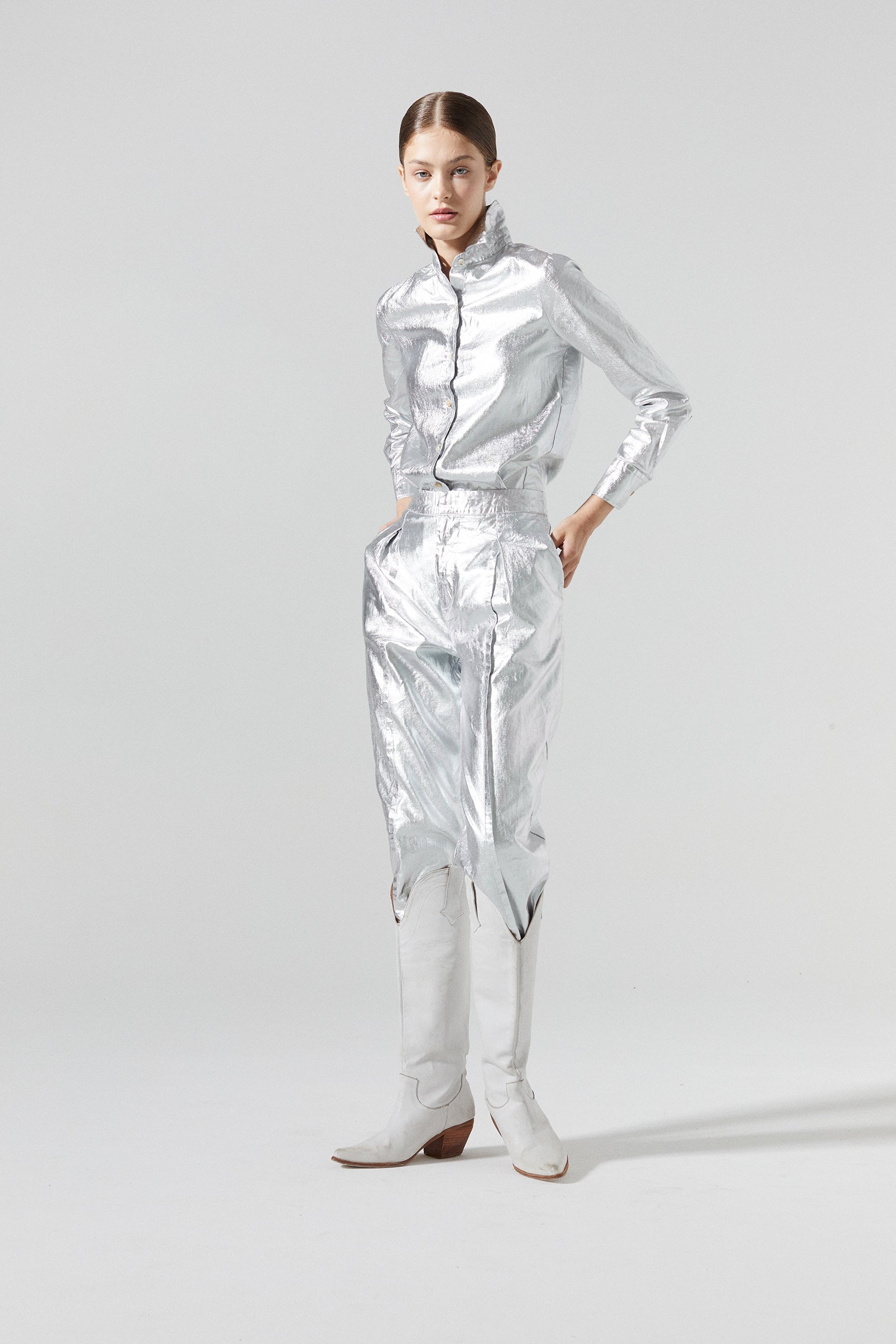 PLEASE NOTE: This garment has a metallic print with a fade-out wash that aims to give an aged appearance. Both the metallic print and the washed effect are very delicate processes that make this item a one-of-a-kind piece with very careful handling.