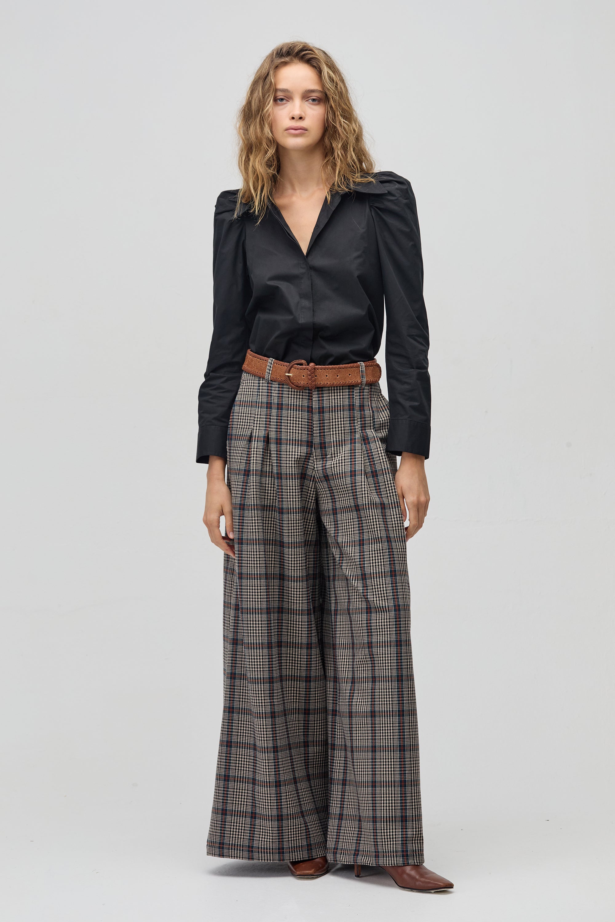 - Wide-leg silhouette