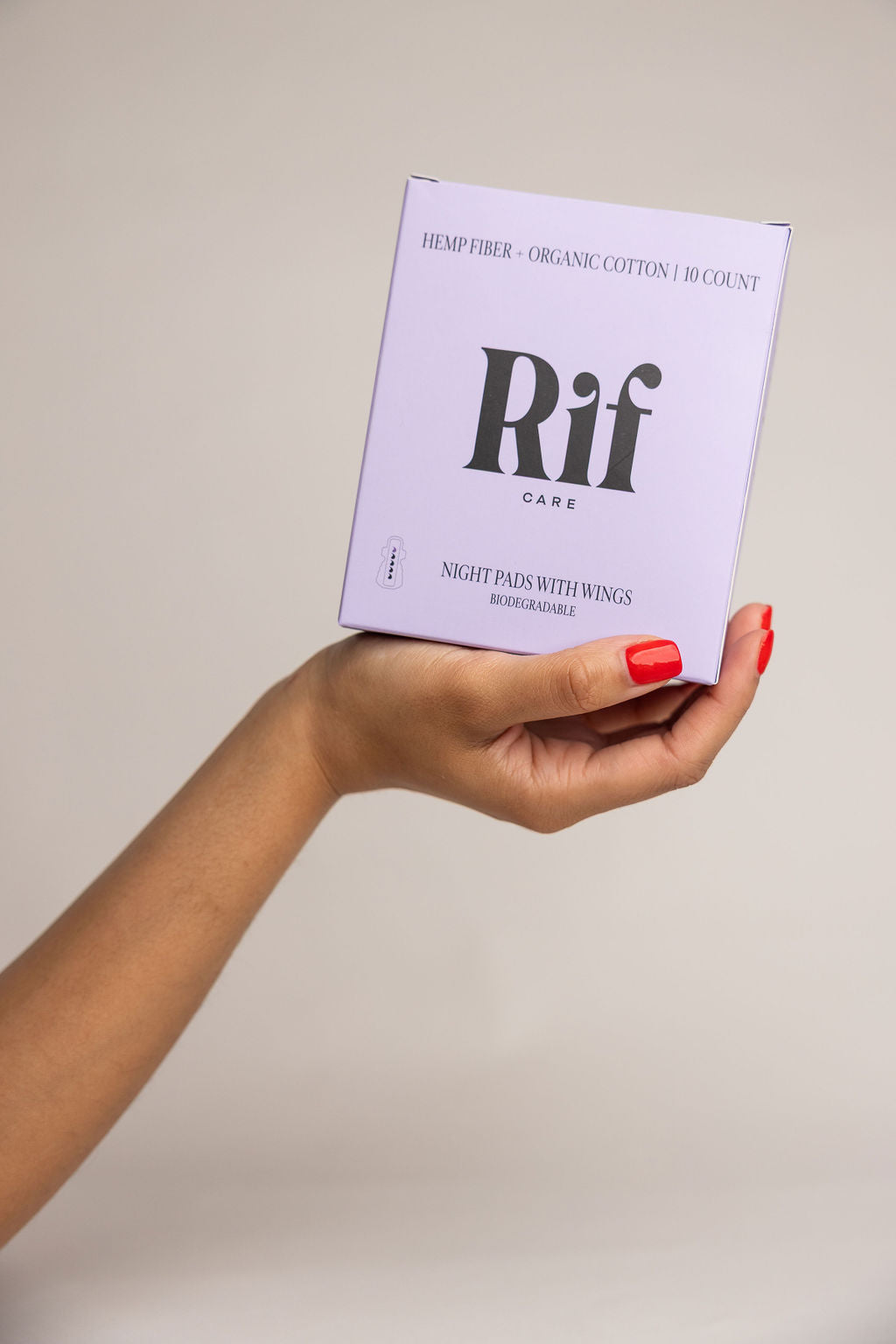 Upgrade your overnight self care with Rif Care's plant based hemp fiber pads! Ultra absorbent, naturally odor fighting and super soft for all night comfort.
