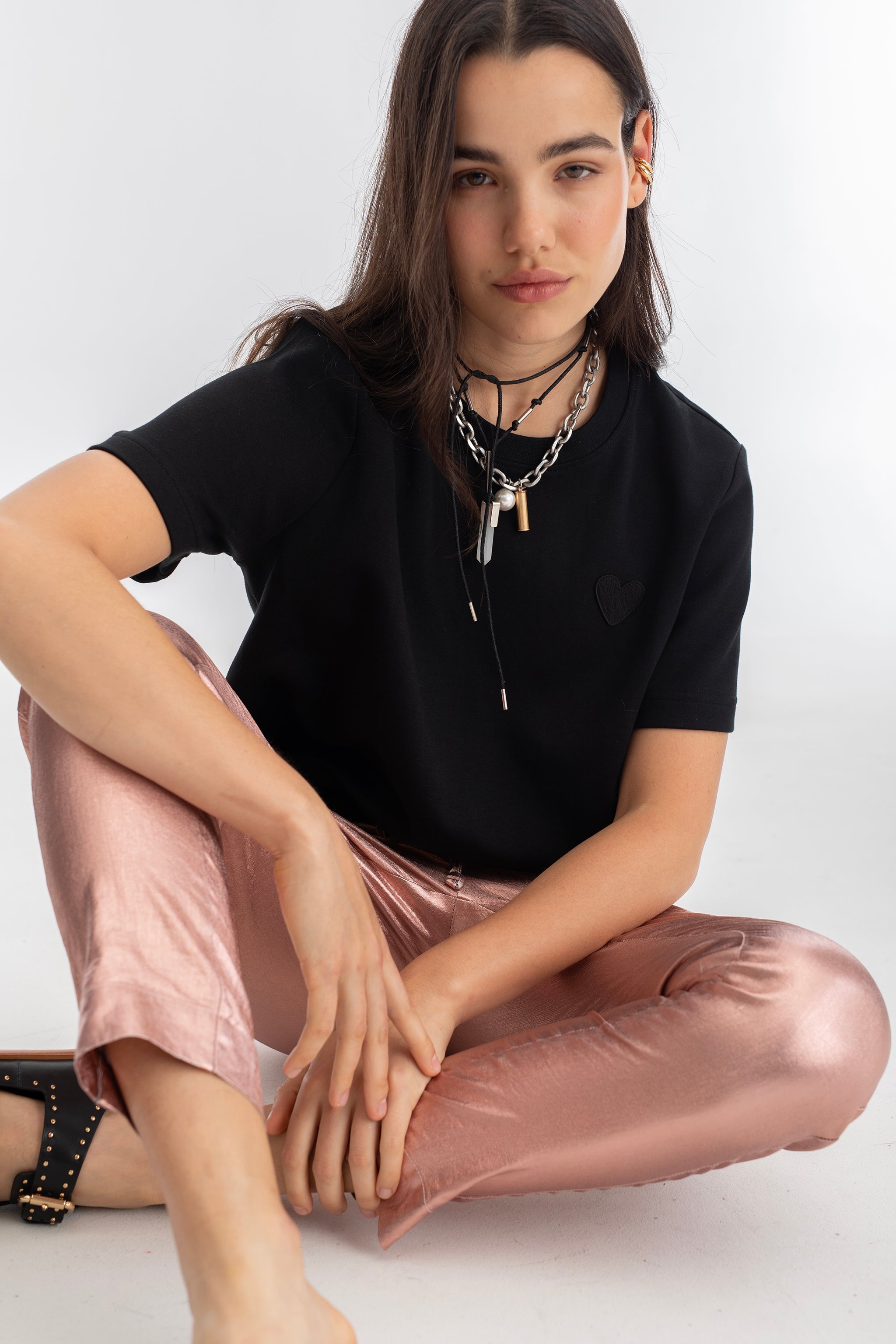 The Ever T-Shirt is a must-have basic for your wardrobe because it’s easy and cute. It’s made from a cotton and spandex blend, making it super soft and comfortable. Plus, it features a tone-on-tone heart badge, because we know you’re going to love it.