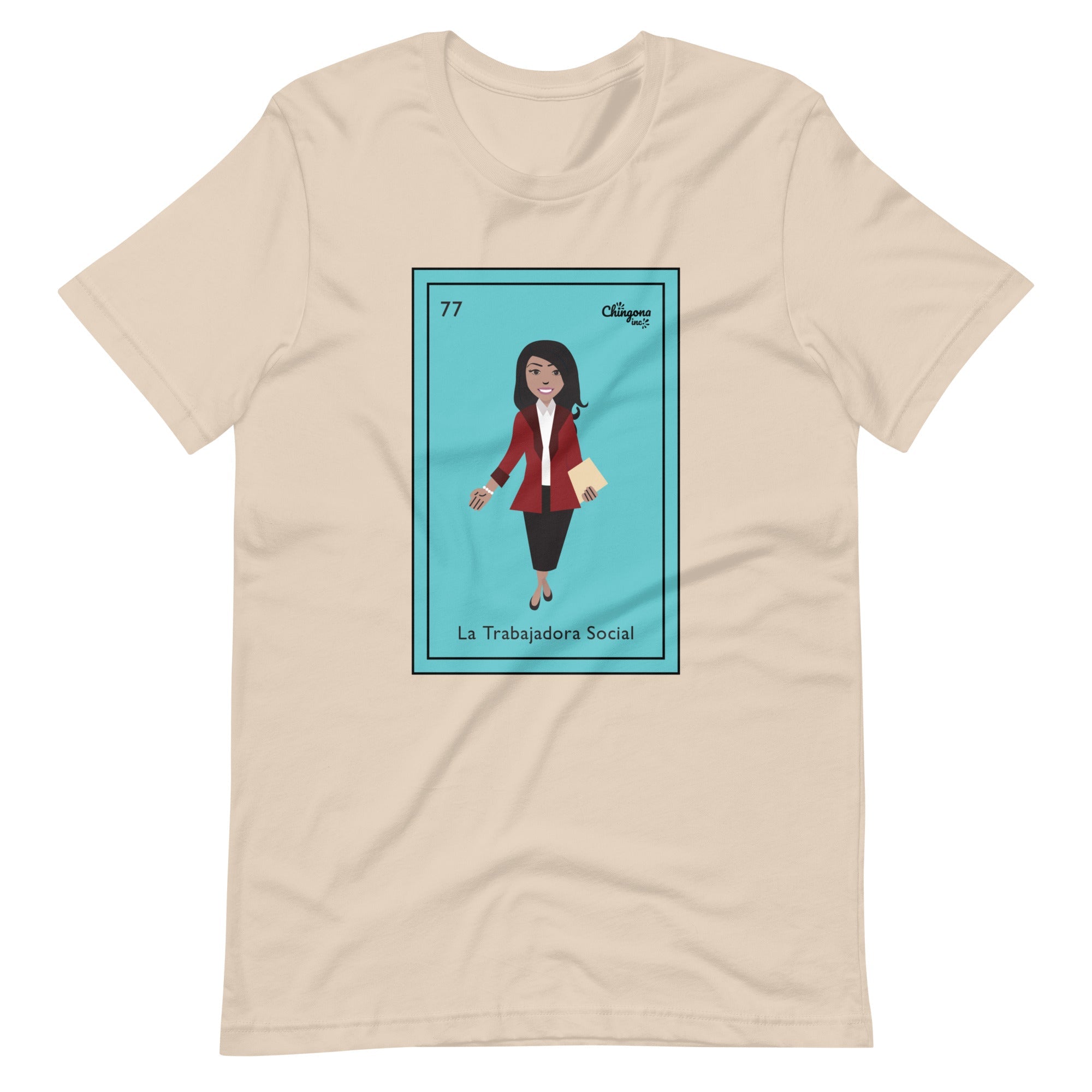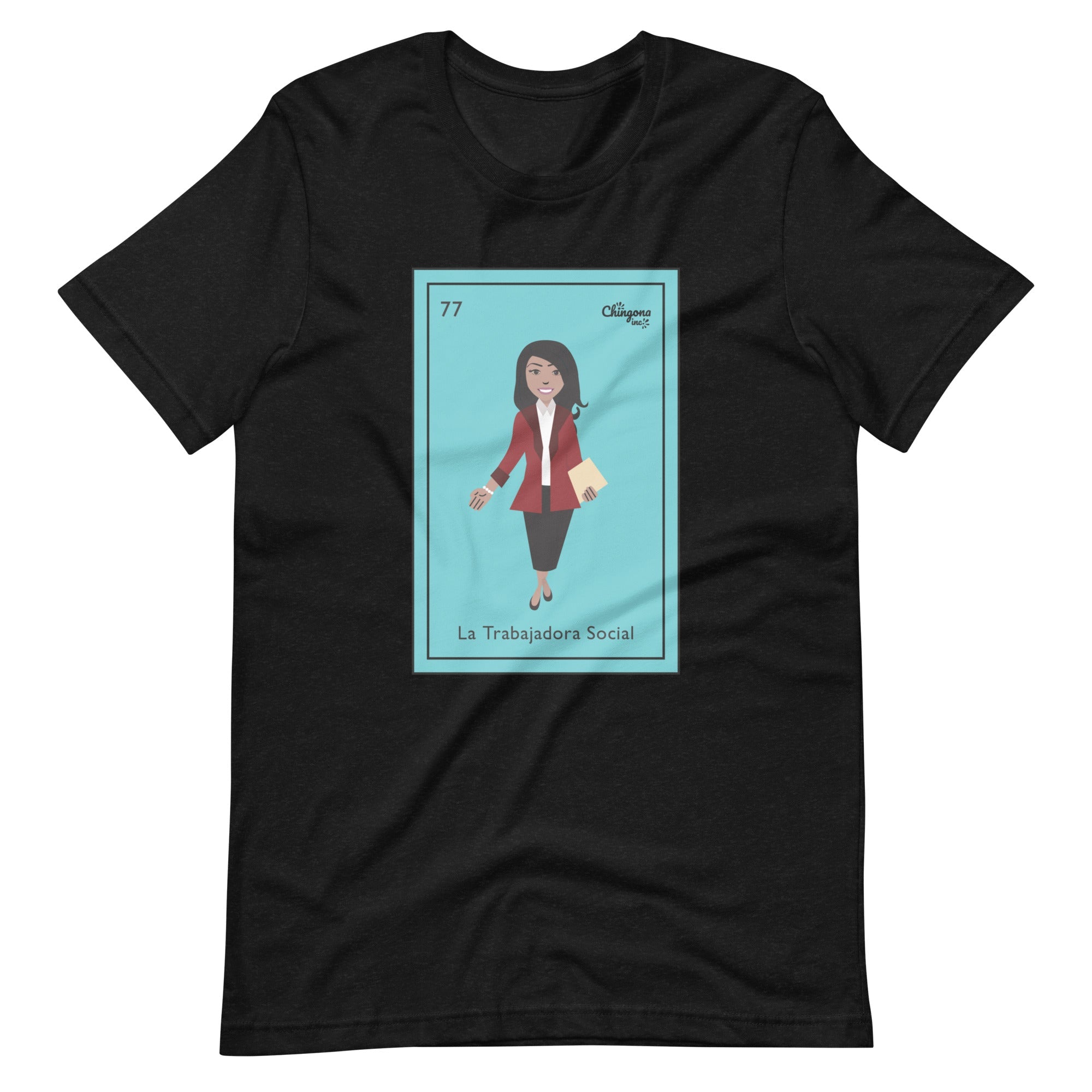 This social worker t-shirt is perfect for a Latina. It feels soft and lightweight, with the right amount of stretch. It's comfortable and flattering for all. La Trabajadora Social Mexican Loteria T-Shirt.