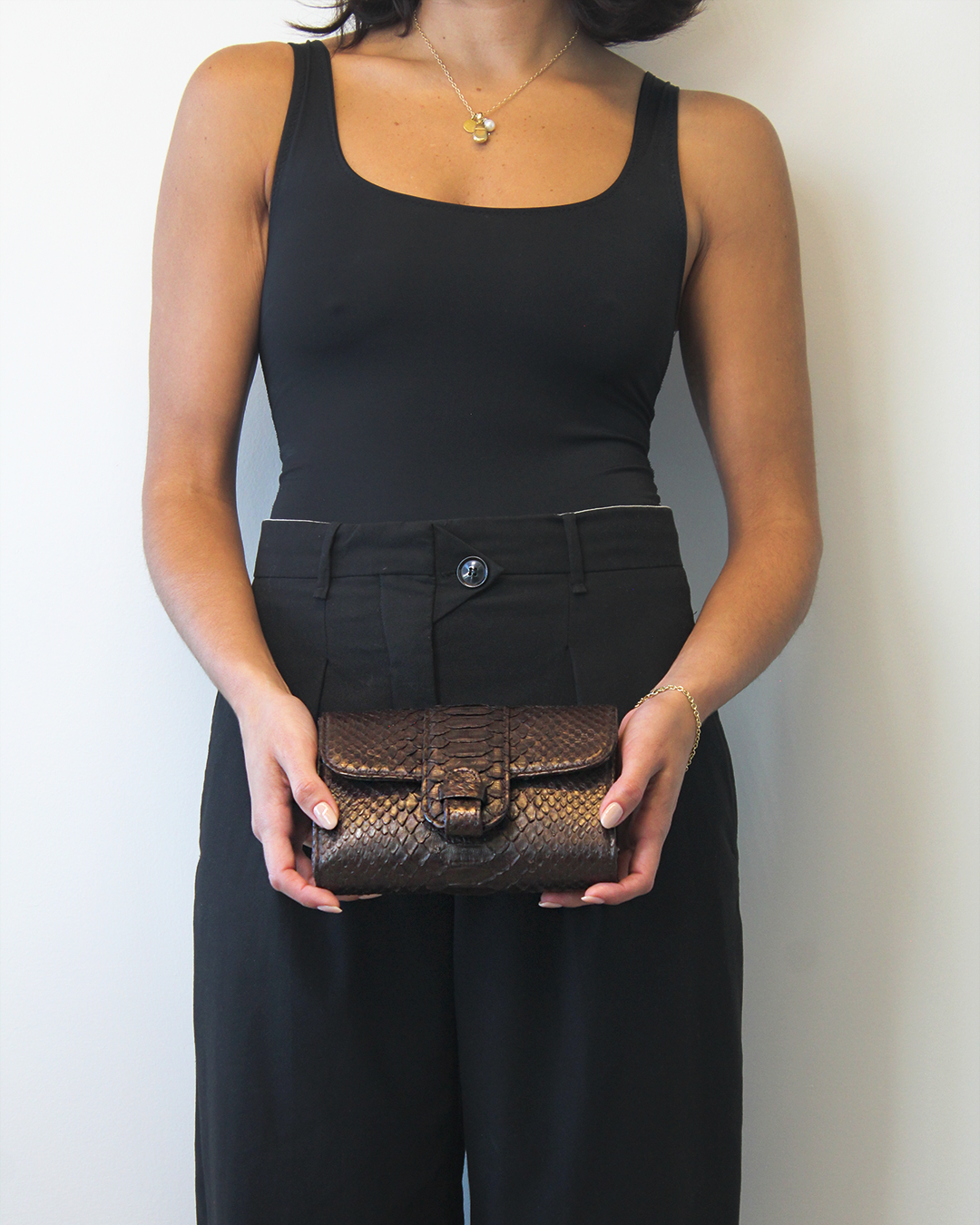 The Rita mini clutch is a versatile Italian-crafted bag designed for effortless style. Featuring an open pocket inside, it can easily accommodate your phone and other essentials. The included strap allows you to wear it as a shoulder bag or a crossbody, while our signature flap with magnetic snap closure adds a touch of sophistication. Its lightweight design makes it the perfect companion for any occasion.